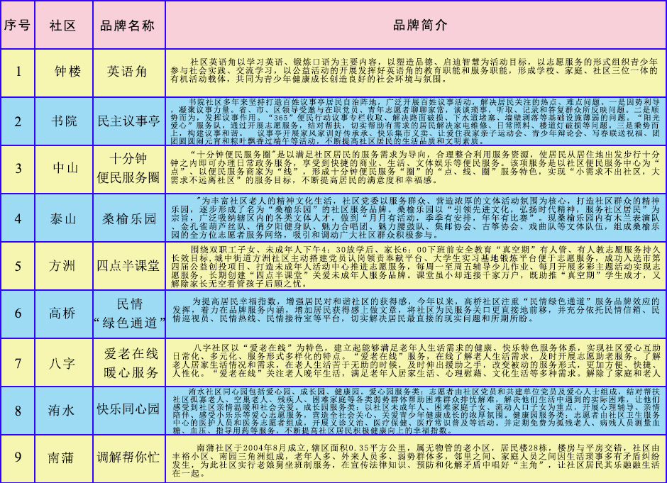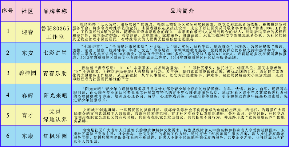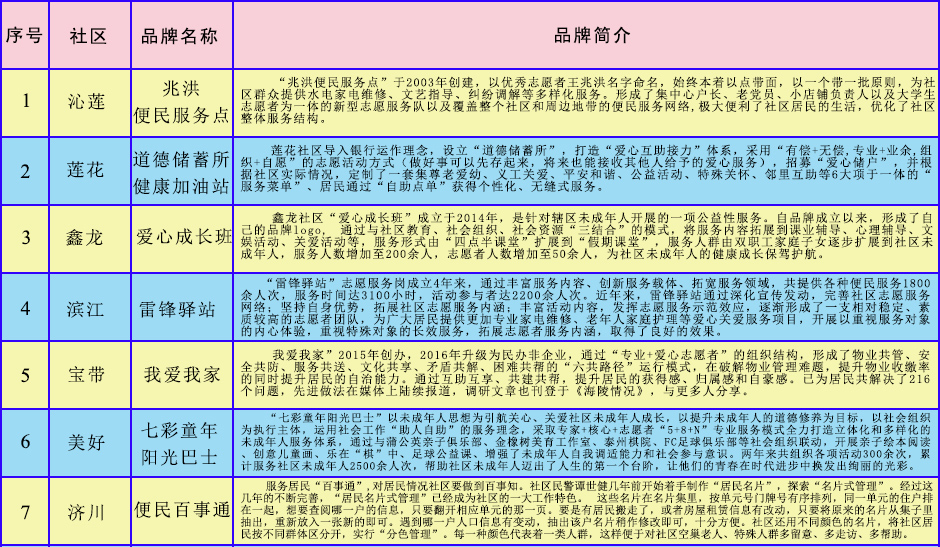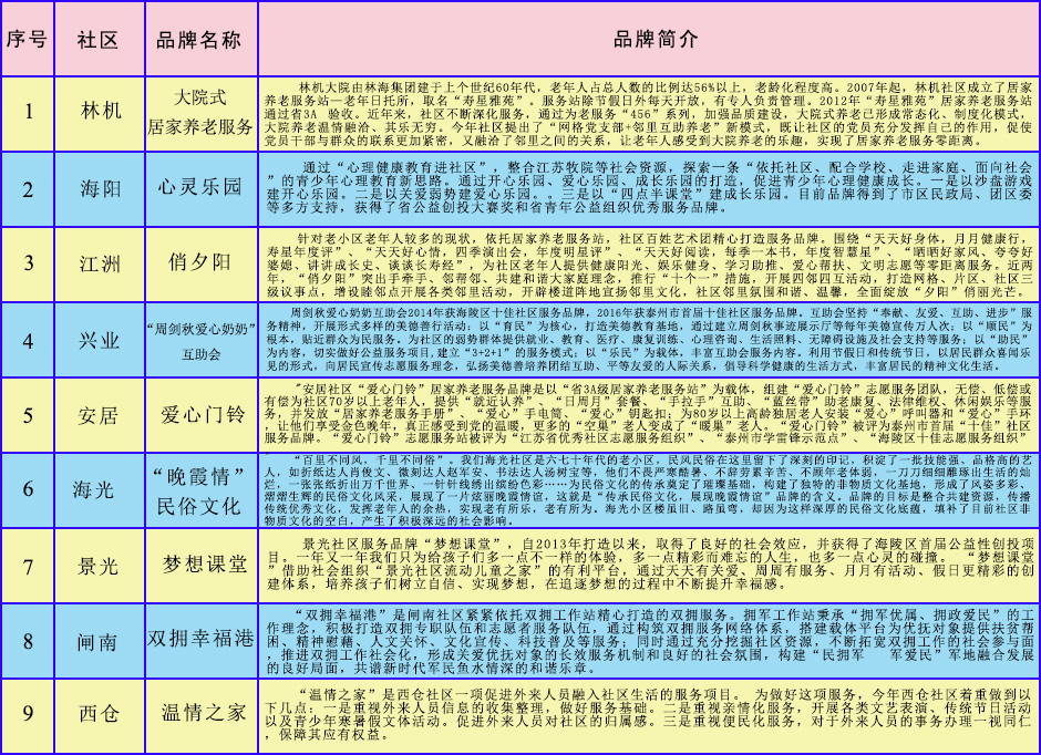 周剑秋爱心奶奶互助会2014年获海陵区十佳社区服务品牌,2016年获泰州市首届十佳社区服务品牌。互助会坚持“奉献、友爱、互助、进步”服务精神,开展形式多样的美德善行活动:以“育民”为核心,打造美德... [详细内容]